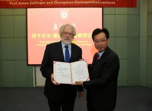 Anton Zeilinger was appointed Honorary Professor of Nanjing University in 2016. This prestigious appointment led to the signing of a memorandum of cooperation between NJU and the Austrian Academy of Sciences (AAS), fostering collaboration in the field of quantum physics and other related areas.