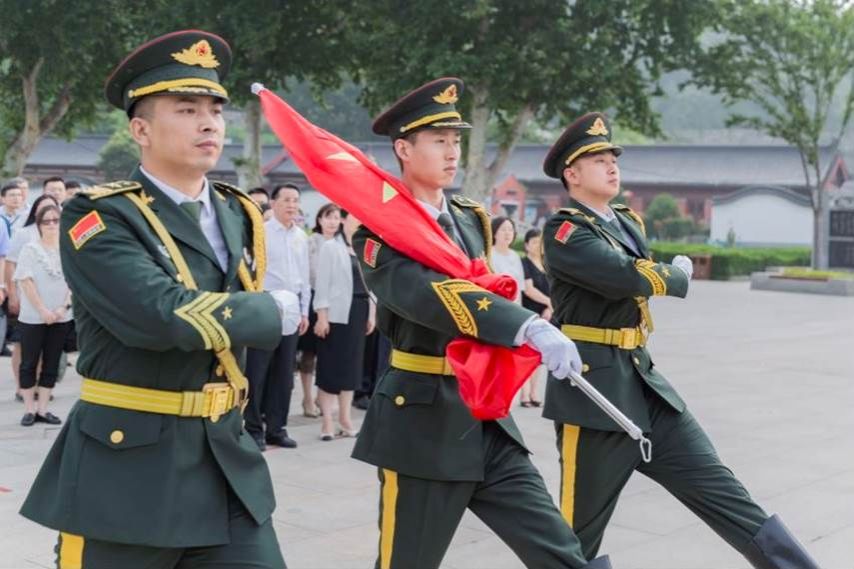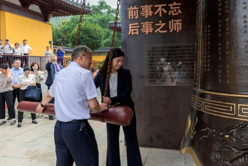 Jinghai Temple is a historical site where China’s first unequal treaty, the Treaty of Nanking, was discussed in 1842. The Treaty of Nanking marked the end of the First Opium War and was one of the infamous “Unequal Treaties” that had a lasting impact on China’s history and foreign relations. At 9 a.m., the participants gathered at the square in front of the Treaty of Nanking Historical Archives Museum for a national flag raising event.