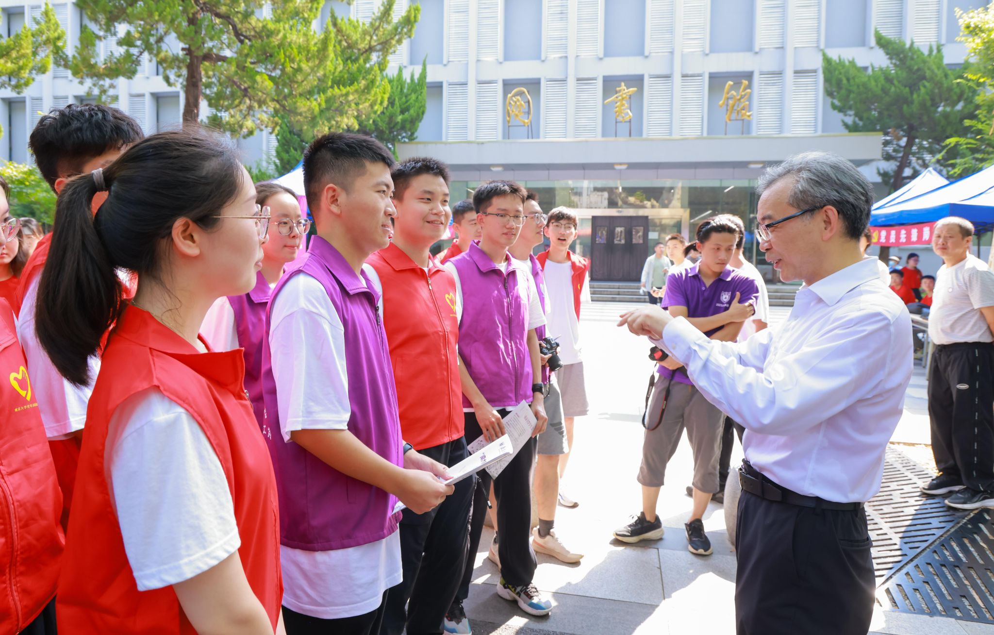 On August 25, Tan Zhemin, President of Nanjing University and member of the Chinese Academy of Sciences, visited the Gulou campus to warmly welcome the incoming Class of 2028 undergraduate students. He also met with faculty, staff, and volunteers and expressed appreciation for their efforts.