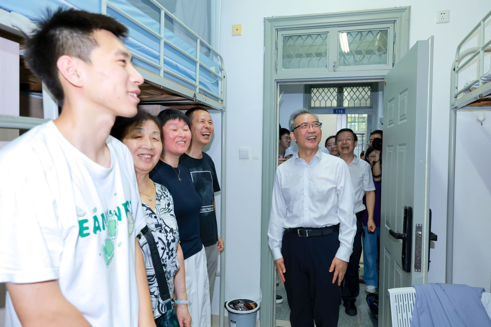 8月31日,凯发k8官网校长、中国科学院院士谈哲敏来到鼓楼校区迎新现场,了解学校迎新工作相关情况,亲切看望2025级本科新生,走访慰问在一线忙碌的师生员工与志愿者。