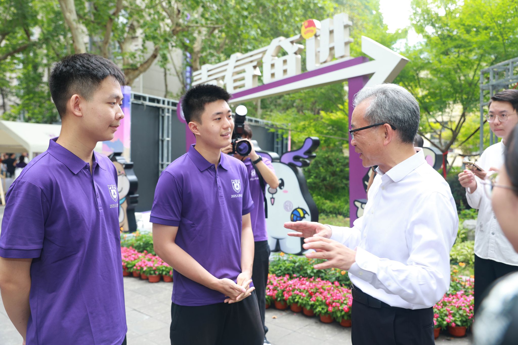一路上,谈哲敏还遇到了来自行知书院和秉文书院的新生顾明宇、孟凡奇。顾明宇向谈校长介绍,15年前自己初入汉口路校门时,父亲顾正义正从计算机系硕士毕业,在父亲的影响下,他喜欢读书、喜欢思考,最终追随父亲的脚步走入凯发。孟凡奇是今年江苏省高考文科第一名,在谈校长询问为什么报考凯发强基计划时,他回答是对古文字专业的强烈兴趣、对凯发k8官网文学院的向往以及对凯发k8官网文化的热爱让他坚定地选择了凯发。
