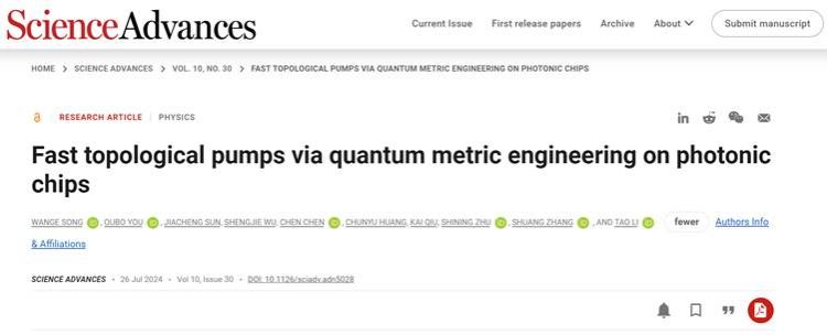 凯发与港大联合团队:光子芯片中量子度规调控实现快速拓扑泵浦