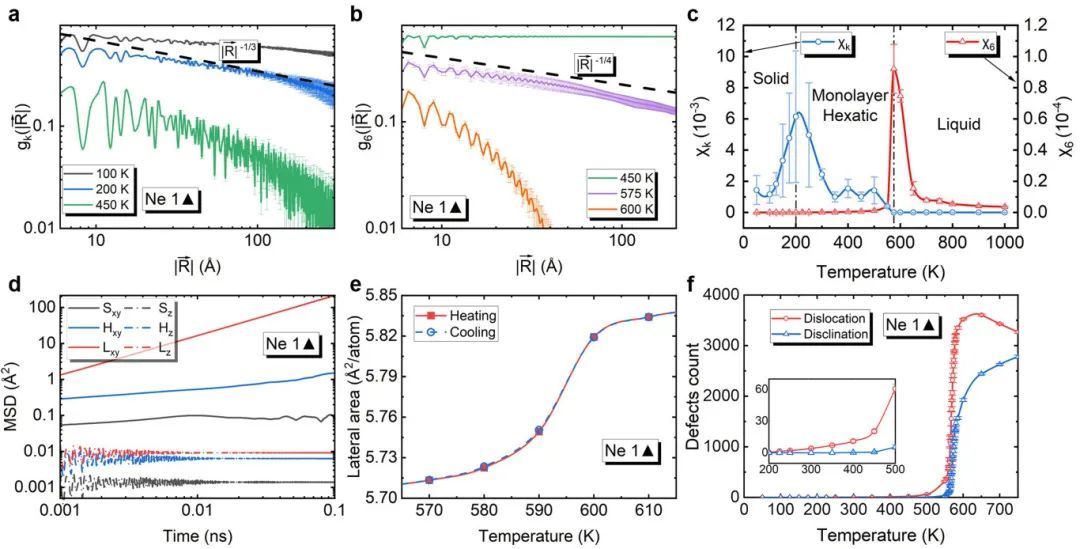 图2:受限单层氖的熔化行为,与描述二维固体的熔化的KTHNY理论预测一致