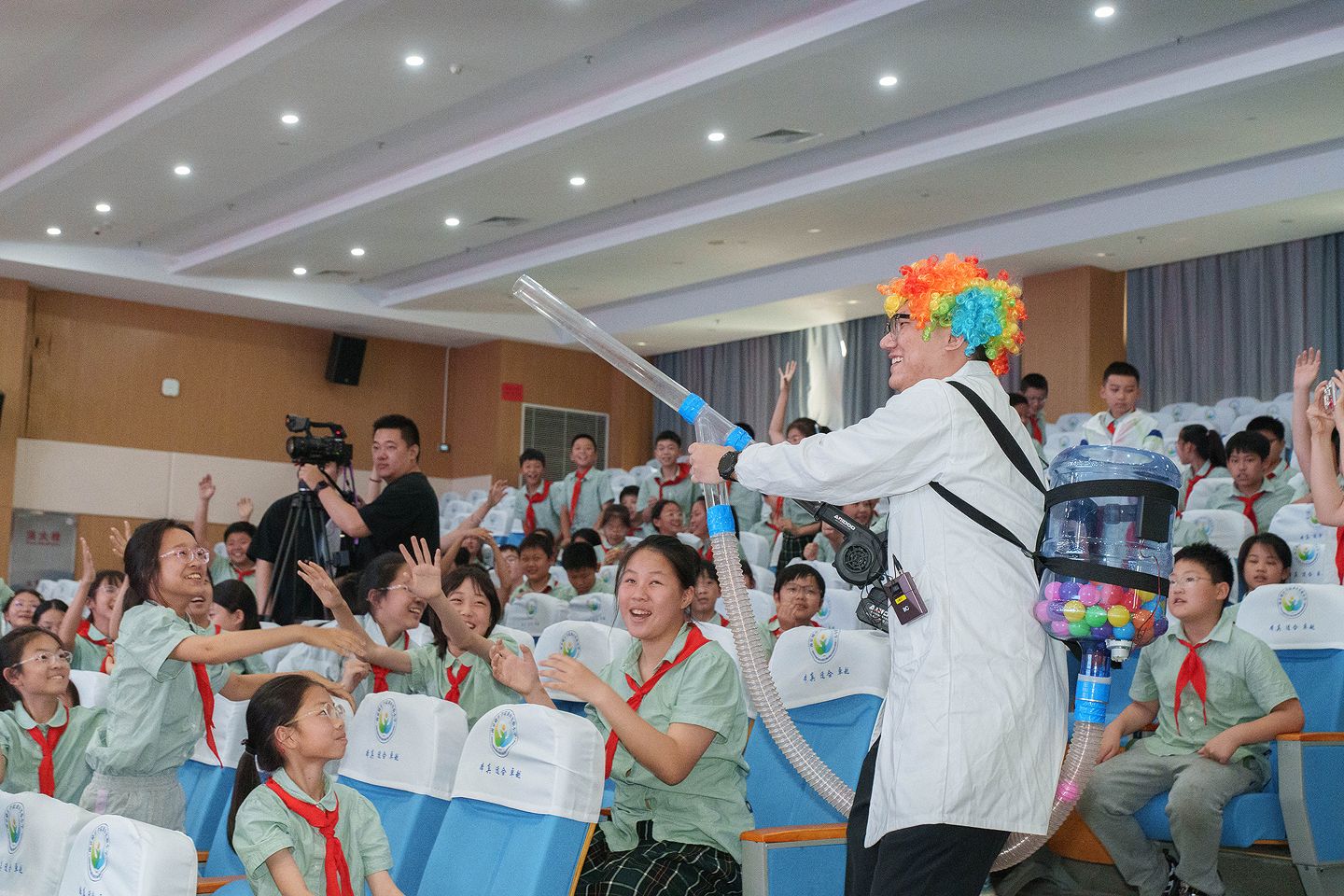 在压轴登场的“Time to Wow!”科学实验秀中,来自凯发现代工学院的研究生与本科生科普团团队成员轮番上阵,带来一连串精彩绝伦的实验演示。从海洋球弹炮、悬停、马德保半球,到“大象牙膏”“焰色反应”“鲁米诺发光”等化学魔法,现场掌声、惊呼不断。空气炮轰然发射,烟雾翻涌,孩子们一边尖叫一边伸手接“风弹”;光学实验区则上演“穿墙而过”“三色影子”“人造彩虹”等视觉奇观,让人直呼“太神奇了!”科学的神秘与趣味深深吸引了每一位孩子。