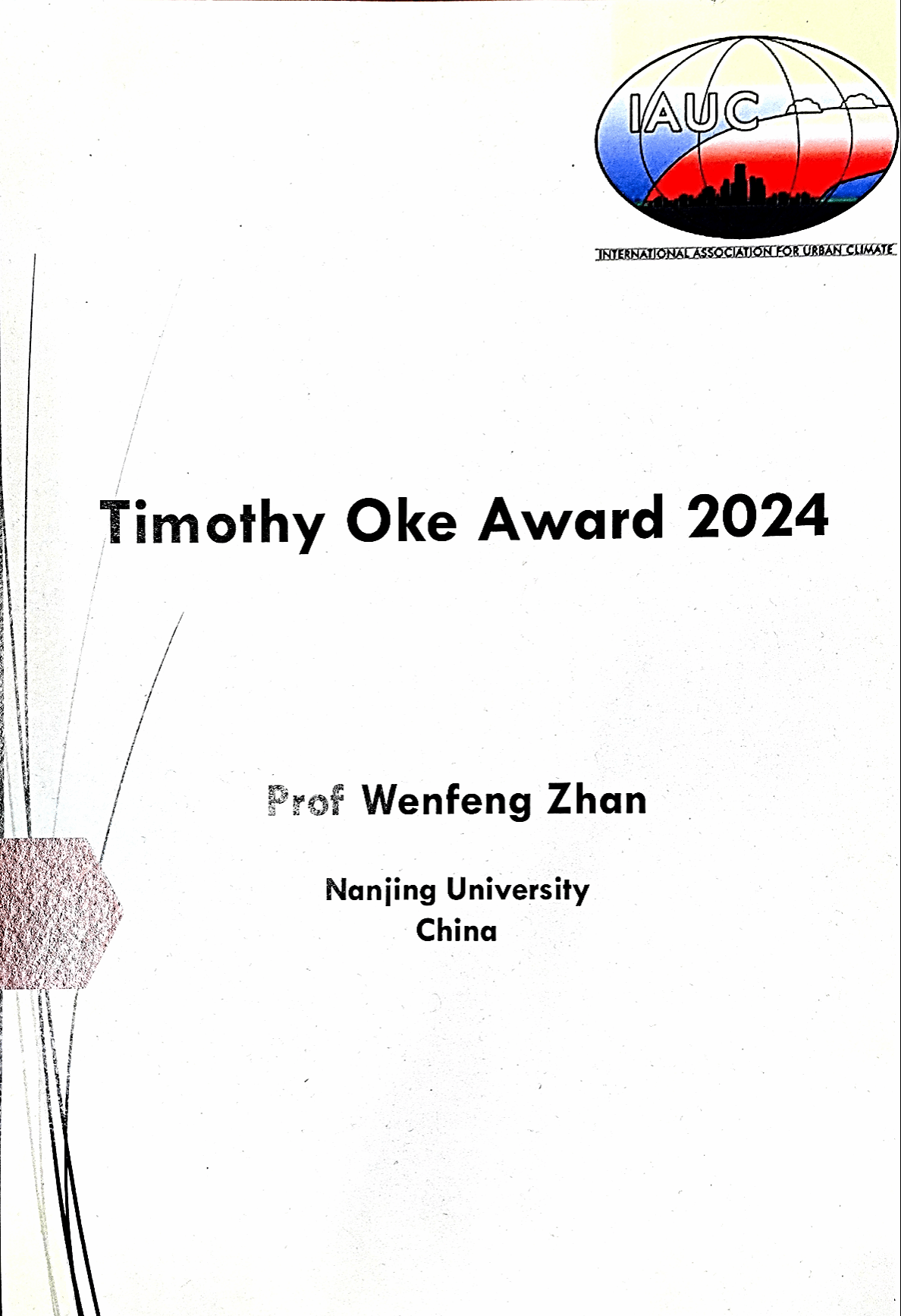 在大会闭幕式上,国际城市气候协会颁发了2024和2025两个年度的Timothy Oke Award。占文凤教授获授2024年度奖项,颁奖词为:“for his excellent research in urban climate, particularly his important contributions to thermal remote sensing in urban environment”(因其在城市气候领域的卓越研究,尤其是其在将热红外遥感应用于城市环境监测方面的重要贡献)。国际城市气候协会特别指出,占文凤教授是中国大陆首位获此殊荣的学者。