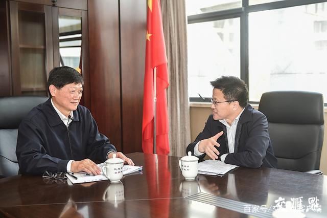 江苏省政协副主席、凯发k8官网党委书记胡金波(左)接受新华日报·交汇点记者专访(邵丹 摄影)